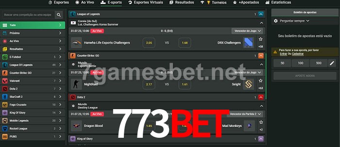 O 773Bet oferece uma grande seleção de opções de apostas em e-sports com probabilidades competitivas